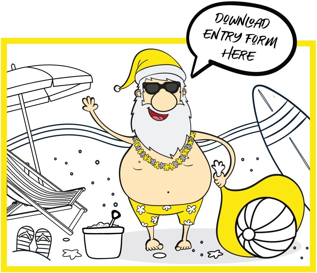 Santa’s feeling all summery and festive this year! Though, he could do with a bit of colour, won’t you agree? Let’s help him out by adding colour to his day at the beach. Download your entry form by clicking on the link below: