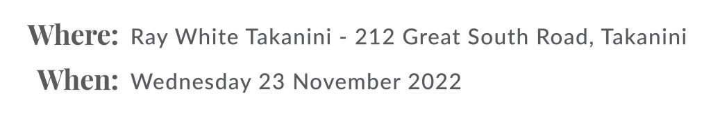 We invite you to South Auckland’s MEGA auction event on Wednesday the 23rd of November, bringing motivated sellers and serious buyers together for a day of live auction action.